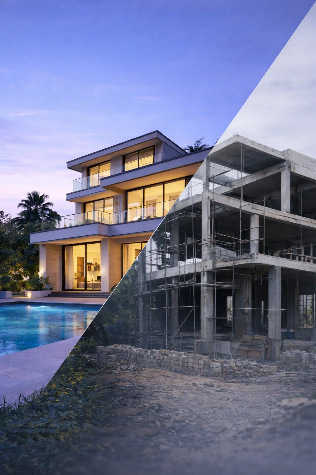 Nous développons des résidences modernes adaptées au climat ivoirien, avec une architecture contemporaine, des matériaux durables et des finitions haut de gamme. Chaque projet est étudié avec précision afin d’intégrer harmonieusement les volumes, les espaces extérieurs et les piscines.